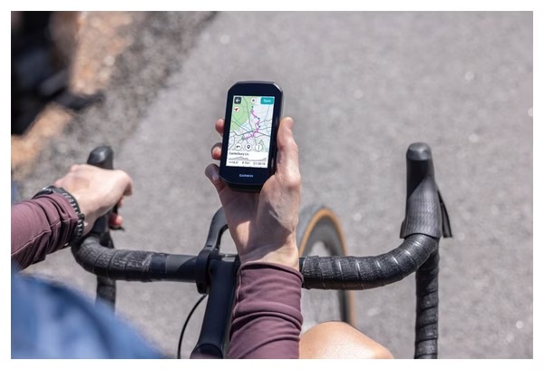Le Garmin Edge 1050 intègre des cartes topographiques avec guidage vocal et visuel précis.