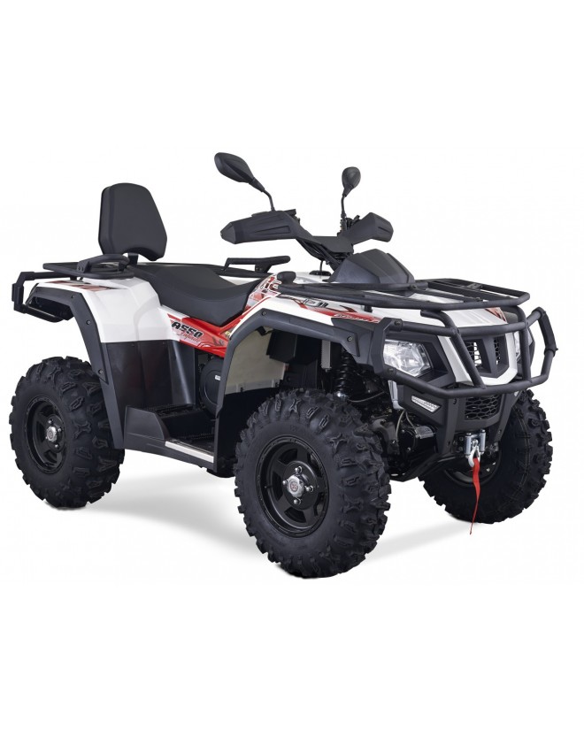Le Quad Masai A550 IX EPS est homologué route pour deux personnes, à partir de 16 ans. Son puissant moteur monocylindre 4T Injection électronique Delphi de 550cc vous permet de profiter du beau temps sur les routes ou les circuits à vitesse grand V.