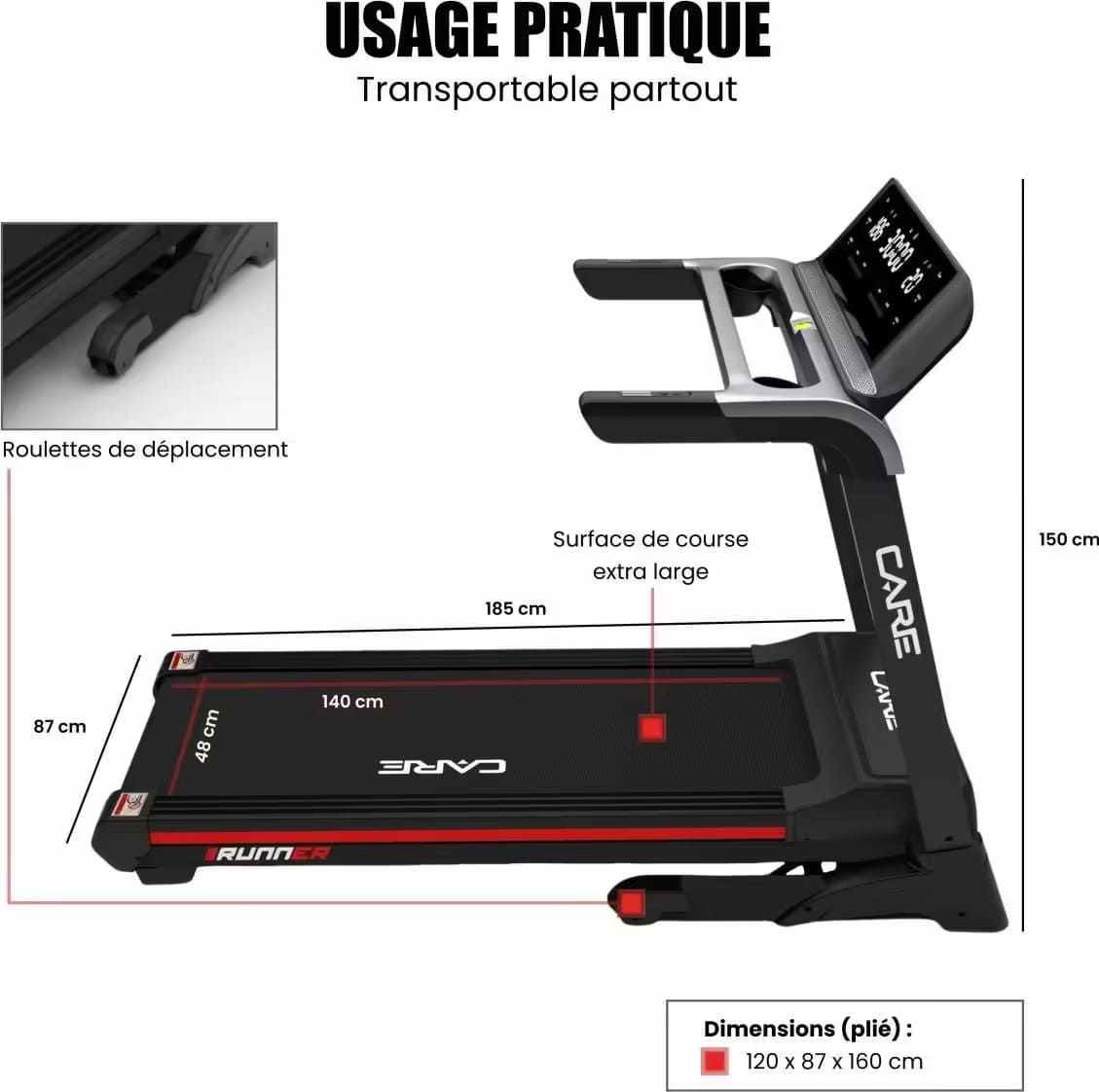 Le CARE RUNNER propose une surface de course confortable et spacieuse.