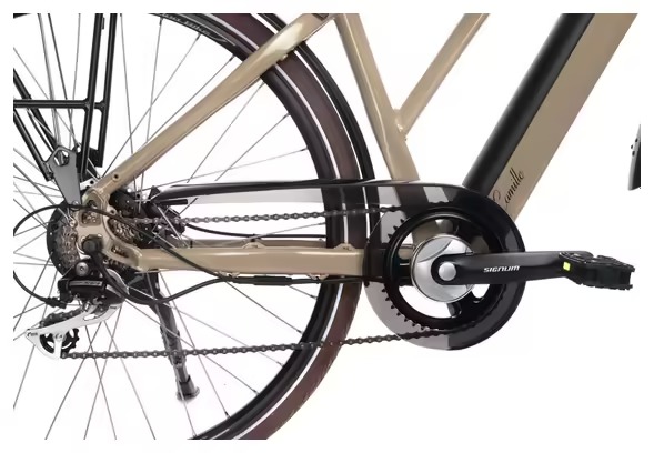 Le Vélo de Ville Électrique Bicyklet Camille Shimano Acera/Altus 8V 504 Wh 700 mm Beige Ivoire est un choix idéal pour les déplacements urbains élégants. Conçu pour les cyclistes modernes, ce vélo allie performance, confort et style. Avec ses composants de haute qualité et son design sophistiqué, il transforme les trajets quotidiens en ville en une expérience agréable et efficace. Design Élégant et Confort OptimalLe Bicyklet Camille se distingue par son design raffiné et sa couleur Beige Ivoire. Cette teinte élégante ajoute une touche de sophistication et de modernité au vélo. Le cadre en aluminium léger et robuste est conçu pour offrir une grande durabilité tout en conservant une esthétique élégante. Le mariage parfait entre fonctionnalité et style fait du Bicyklet Camille un vélo urbain remarquable. Moteur Puissant et Autonomie GénéreuseÉquipé d’un moteur Bafang de 250 W situé dans le moyeu arrière, le Bicyklet Camille offre une assistance électrique fluide et efficace. Ce moteur robuste améliore considérablement le confort de conduite, notamment lors des démarrages et des montées. La batterie intégrée de 504 Wh permet de parcourir jusqu’à 80 km en une seule charge, selon les conditions d’utilisation. Cette autonomie généreuse est idéale pour les trajets quotidiens en ville. Transmission Fiable et Freinage SécuriséLe vélo est équipé d’une transmission Shimano Acera/Altus à 8 vitesses, offrant des changements de vitesse précis et fiables. Cette configuration permet de s’adapter facilement aux différentes conditions de conduite en milieu urbain. Les freins à disque hydrauliques assurent un freinage puissant et progressif, garantissant une sécurité optimale même par temps humide. Confort de Conduite et Accessoires PratiquesLa fourche suspendue Zoom CH141 avec un débattement de 55 mm absorbe efficacement les irrégularités de la route, offrant une conduite plus confortable. La tige de selle suspendue et la selle ergonomique ajoutent au confort général du vélo. Les porte-bagages avant et arrière, les garde-boue, la béquille latérale et le système d’éclairage intégré font du Bicyklet Camille un compagnon polyvalent et fiable pour les déplacements urbains. Utilisation et Entretien FacilesLe Bicyklet Camille est conçu pour une utilisation intuitive et un entretien minimal. L’écran LCD intégré au guidon fournit des informations claires sur la vitesse, l’autonomie et le niveau d’assistance. Pour garantir une longévité optimale, il est recommandé de nettoyer régulièrement le vélo et de vérifier l’état des composants. Pour plus de conseils, consultez notre guide d’entretien sur Redonvelos.com.