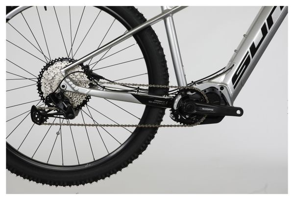 Vélo d’exposition : VTT électrique semi-rigide Sunn Flash S1 29” Argent, équipé d’une transmission Sram SX Eagle 12 vitesses et d’une batterie 500 Wh pour des sorties dynamiques.