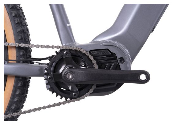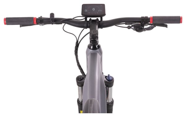 VTT Électrique Semi-Rigide Fluide, équipé d’un groupe Shimano Acera/Altus 9 vitesses, batterie 630 Wh, roues de 29 pouces, finition gris élégant.