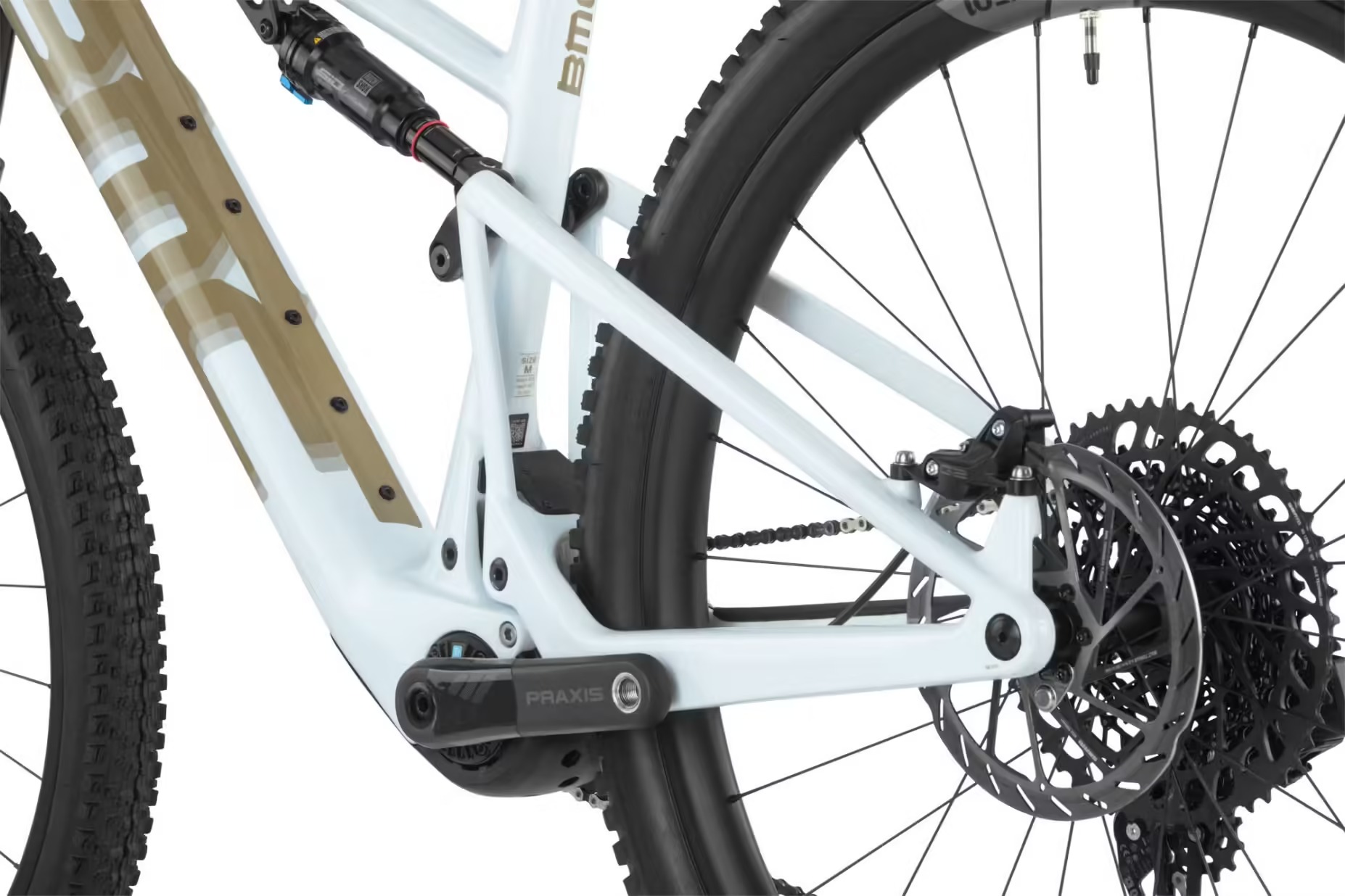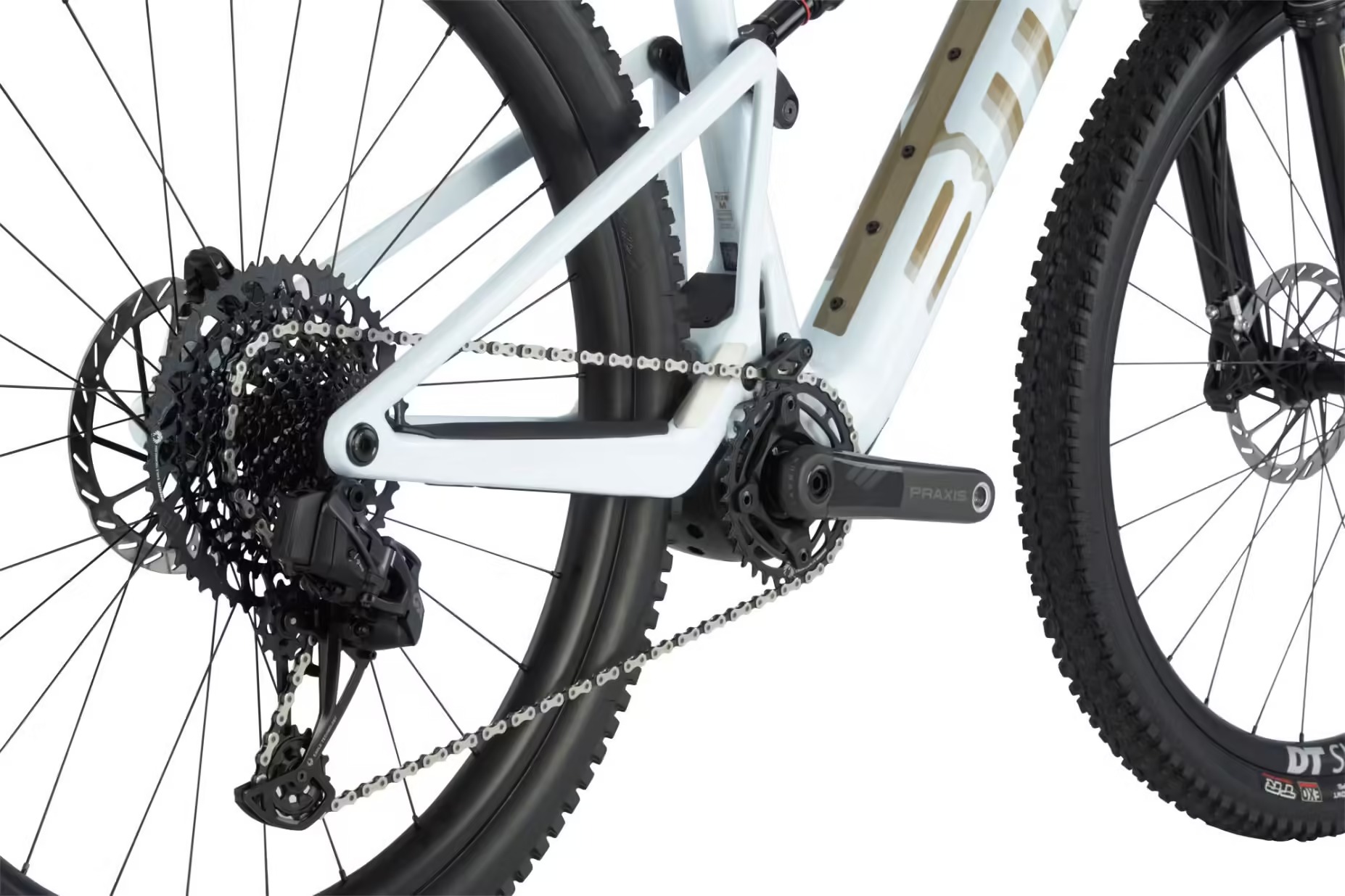 VTT Électrique Tout-Suspendu BMC Fourstroke AMP LT One Sram GX Eagle AXS 12V 360 Wh 29” Beige Sand Blanc 2023