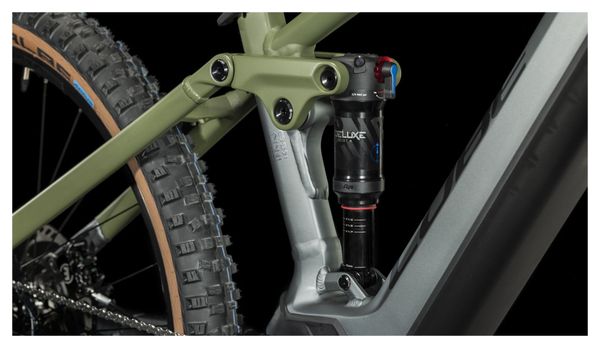 RVTT Électrique Tout-Suspendu Cube Stereo Hybrid 120 TM 750 Sram GX Eagle 12V 750 Wh 29” Gris Flash Vert Olive