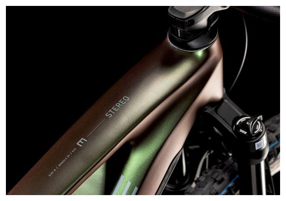 VTT Électrique Tout-Suspendu Cube Stereo Hybrid One44 EXC 800 Shimano Deore XT 12V 800 Wh 29” Vert Orange Stellar Shiftiris 2025